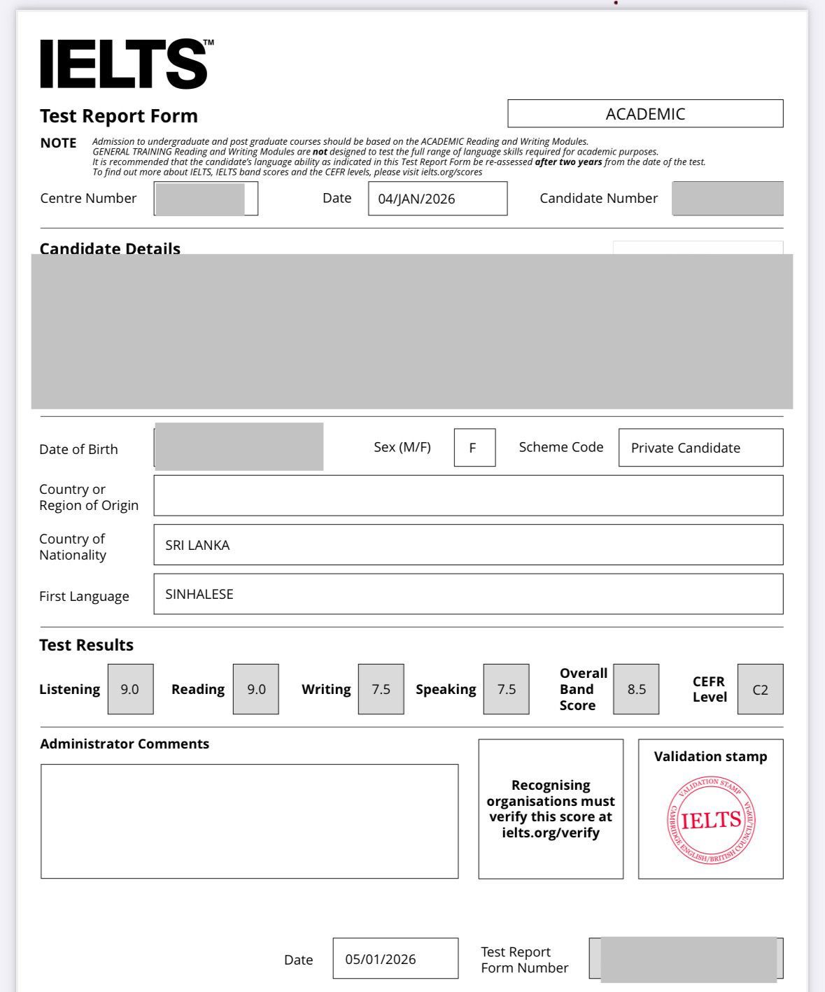 Asanka SeneviratnaMechanical Engineer, Bangladesh Mr Ariff is one of the best IELTS lecturers in Sri Lakna. With his support with in 2 weeks time period I was able to successfully get through my IELTS academic examination. He is not only a competent and well educated but also a humble human being with great professionalism. I highly recommend him for anyone.